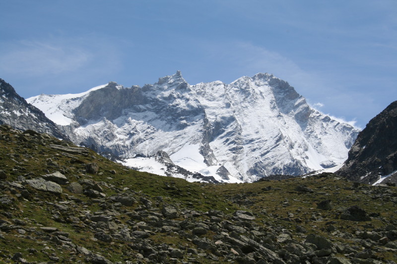 Pointe Sud de Moming, the glacier and le Besso from above from Lac d'Arpetetta