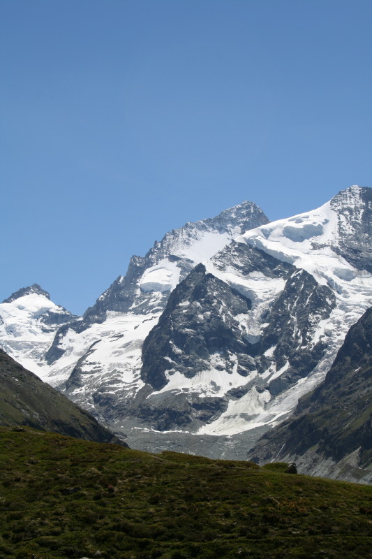 Pointe Sud de Moming, the glacier and le Besso from above from Lac d'Arpetetta